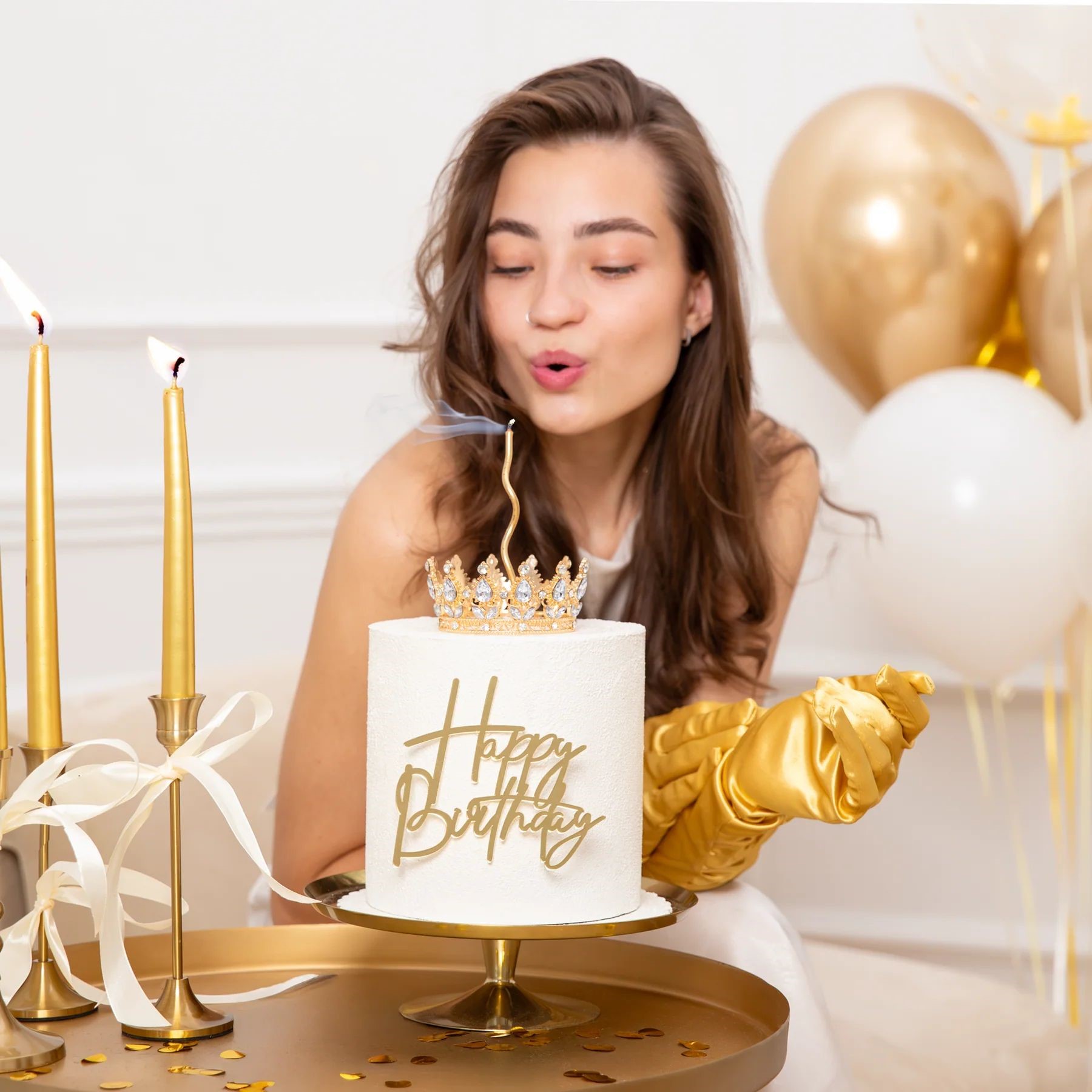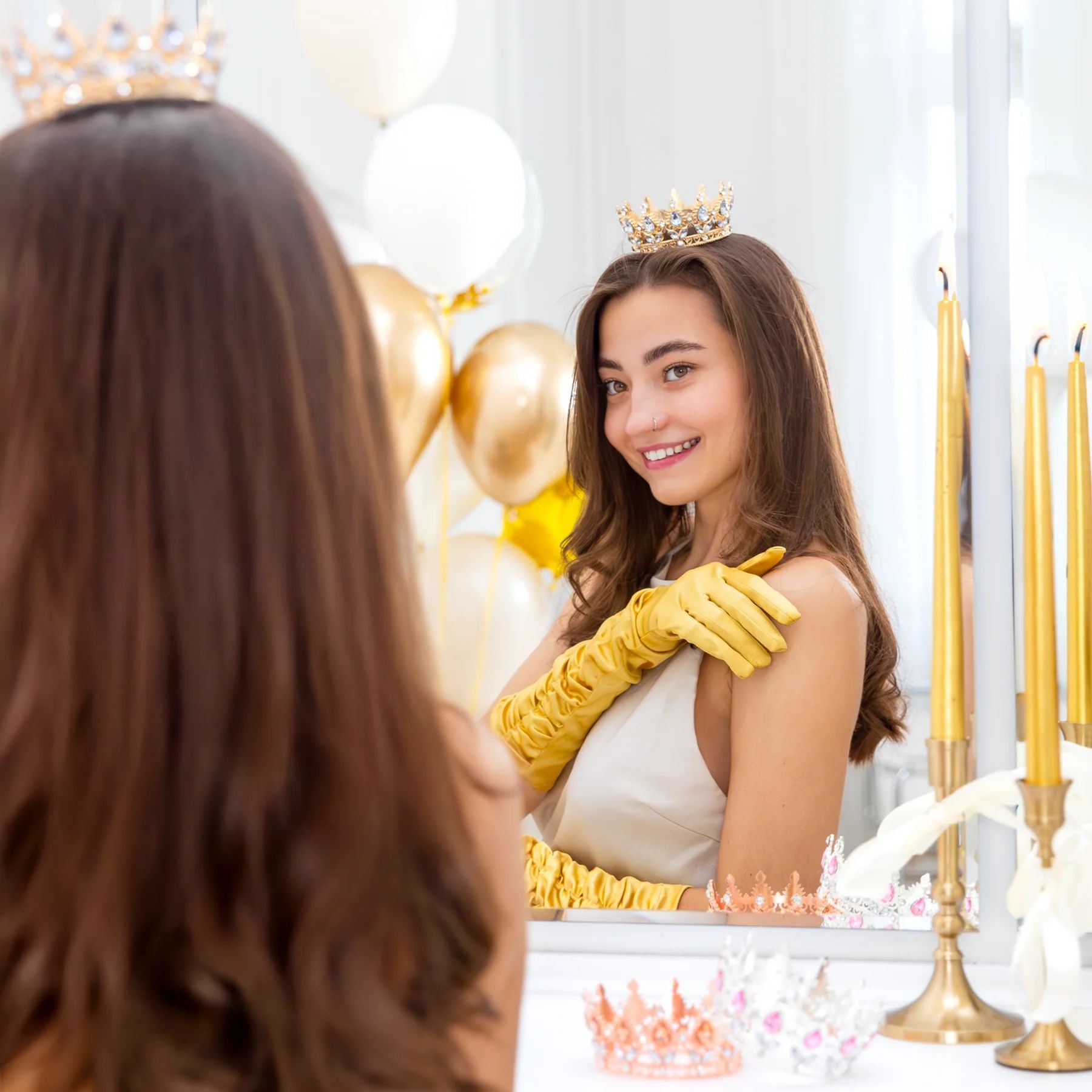 Korona w kolorze złotym ze srebrnymi kryształkami doda blasku każdemu przyjęciu, podkreślając jego wyjątkowy charakter.