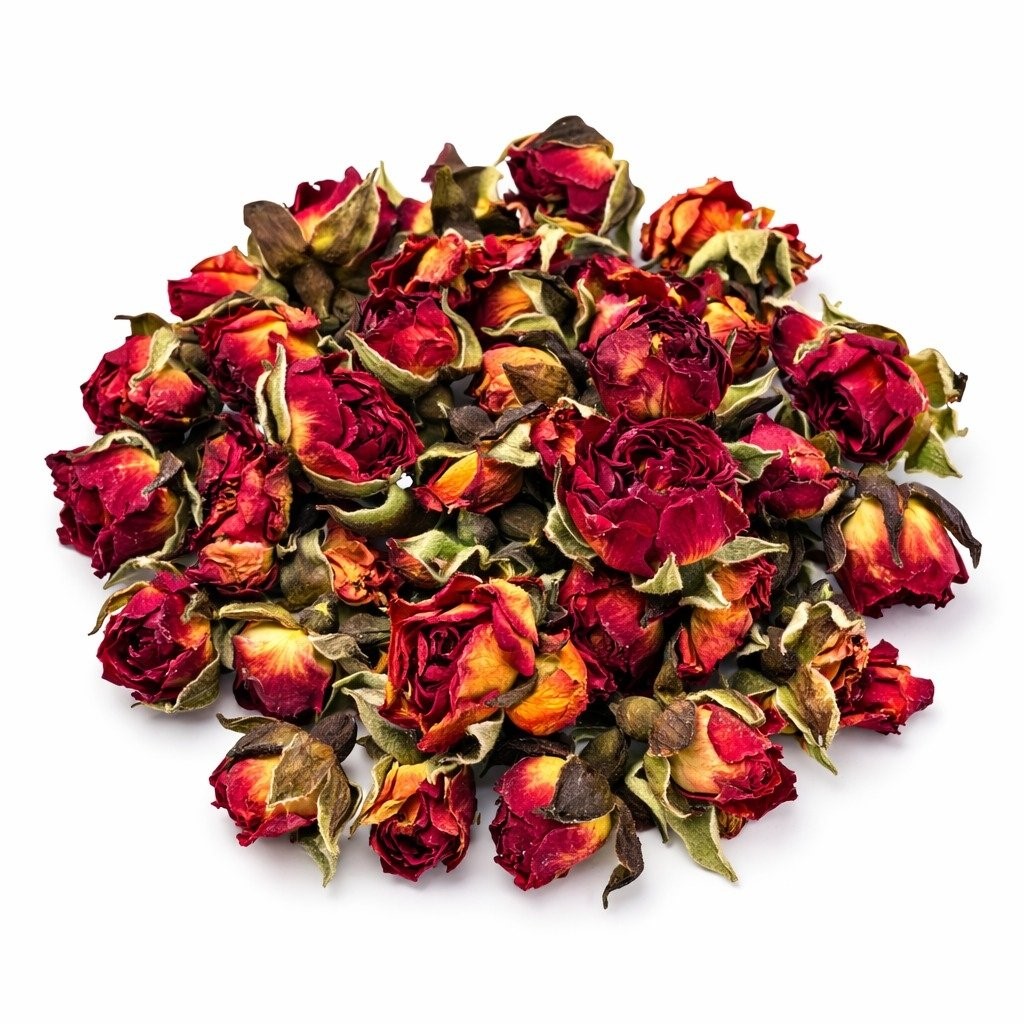 100% naturalny produkt. Suszone pąki róży posiadają walory dietetyczne i prozdrowotne, zawierają witaminy, sole mineralne i flawonoidy. Kwiaty jadalne mają właściwości aromaterapeutyczne, a ich piękny kolor i zapach wzbogacają wygląd i smak dań.