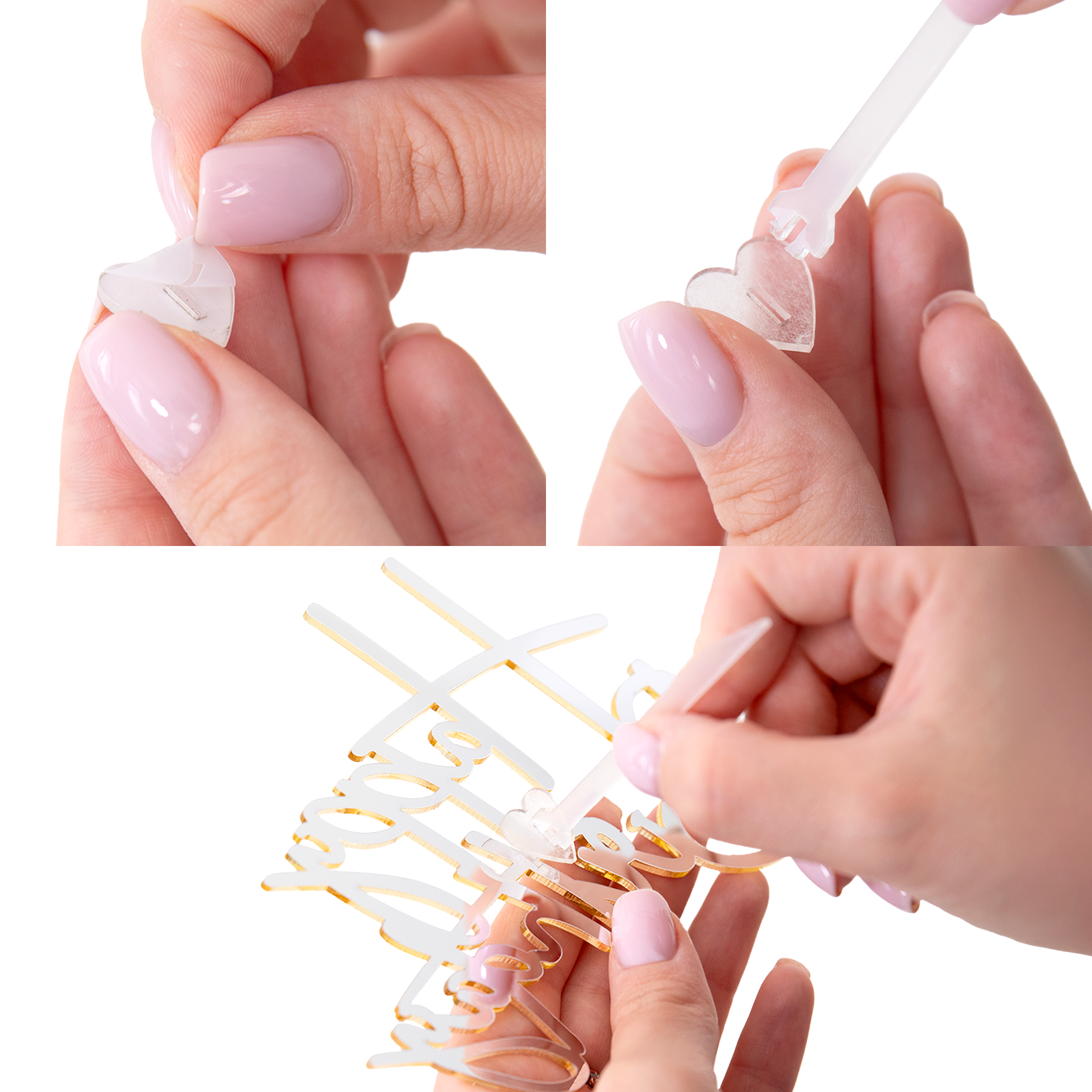 Zestaw zawiera: 1 x topper, 1 x piker, 1 x akrylowe serduszko, które umożliwia połączenie toppera z pikerem